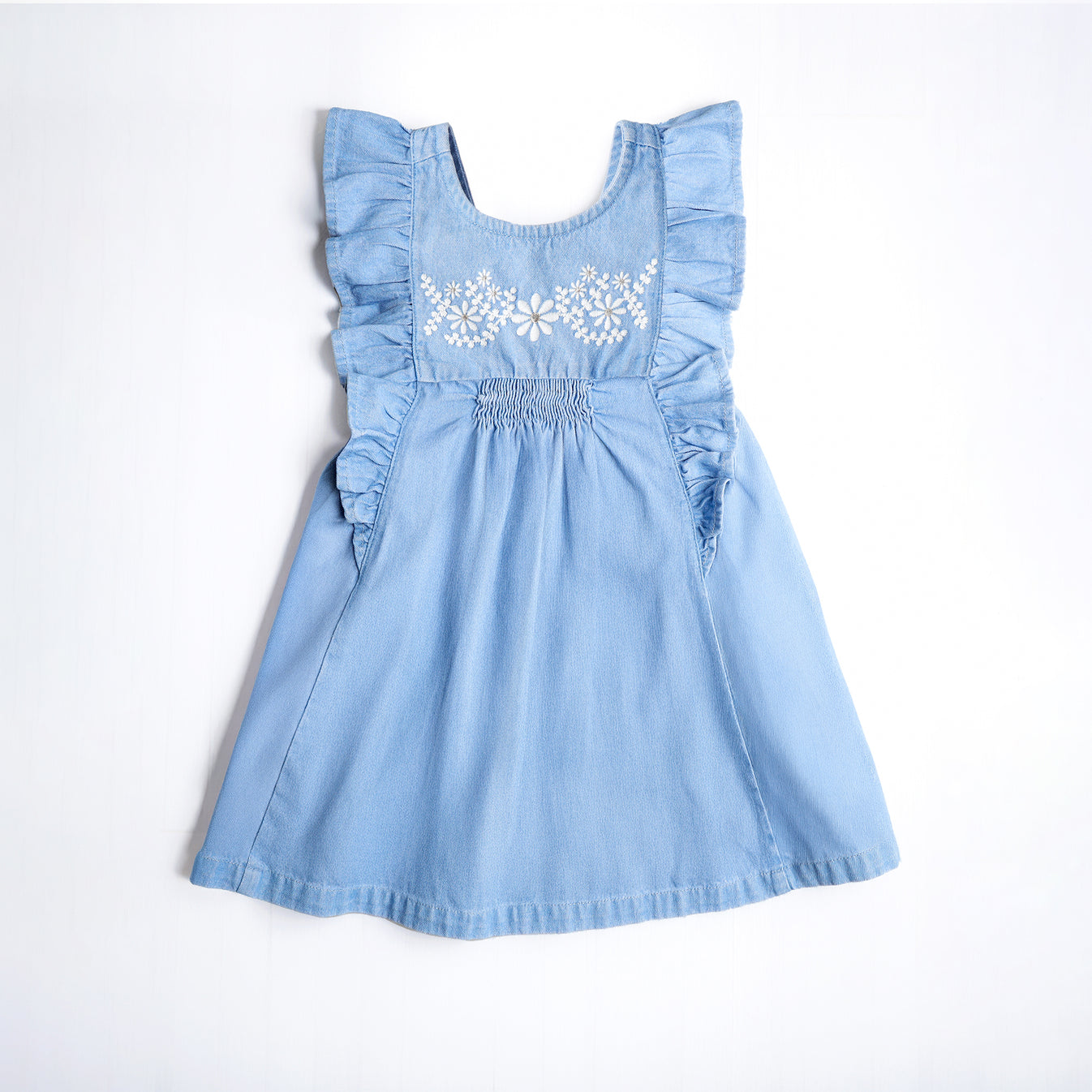 Lucy Dress – Light Blue Denim (Embroidered Ruffle Dress)