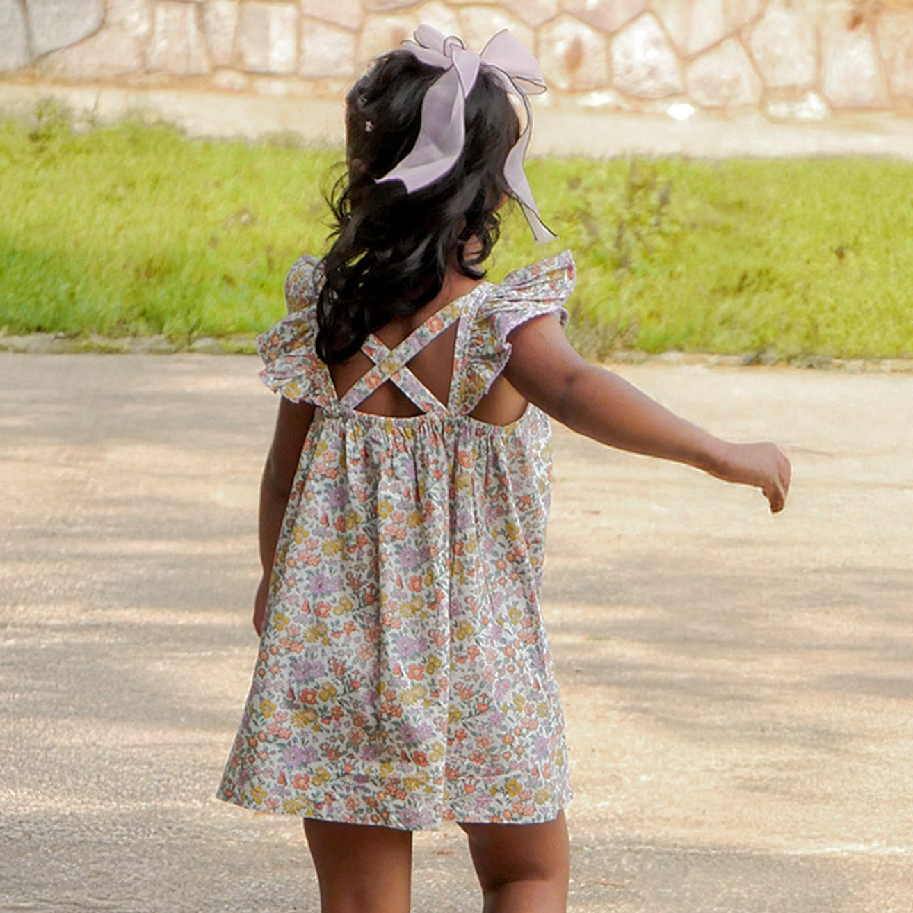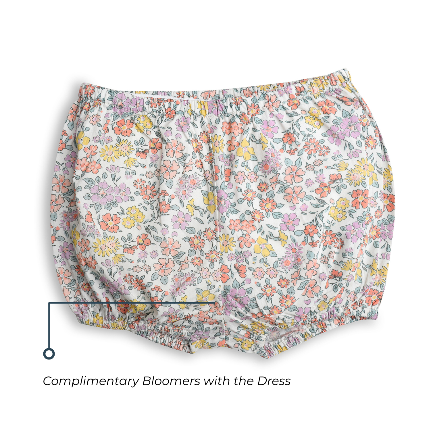 Let her step into summer wrapped in a garden of joy. The Sophie Dress is a floral daydream, crafted in soft, breathable 100% cotton poplin and designed to bloom with every twirl. With a vintage-inspired print in coral, lilac, yellow, and green, this dress is made to capture sunshine and smiles in every thread.