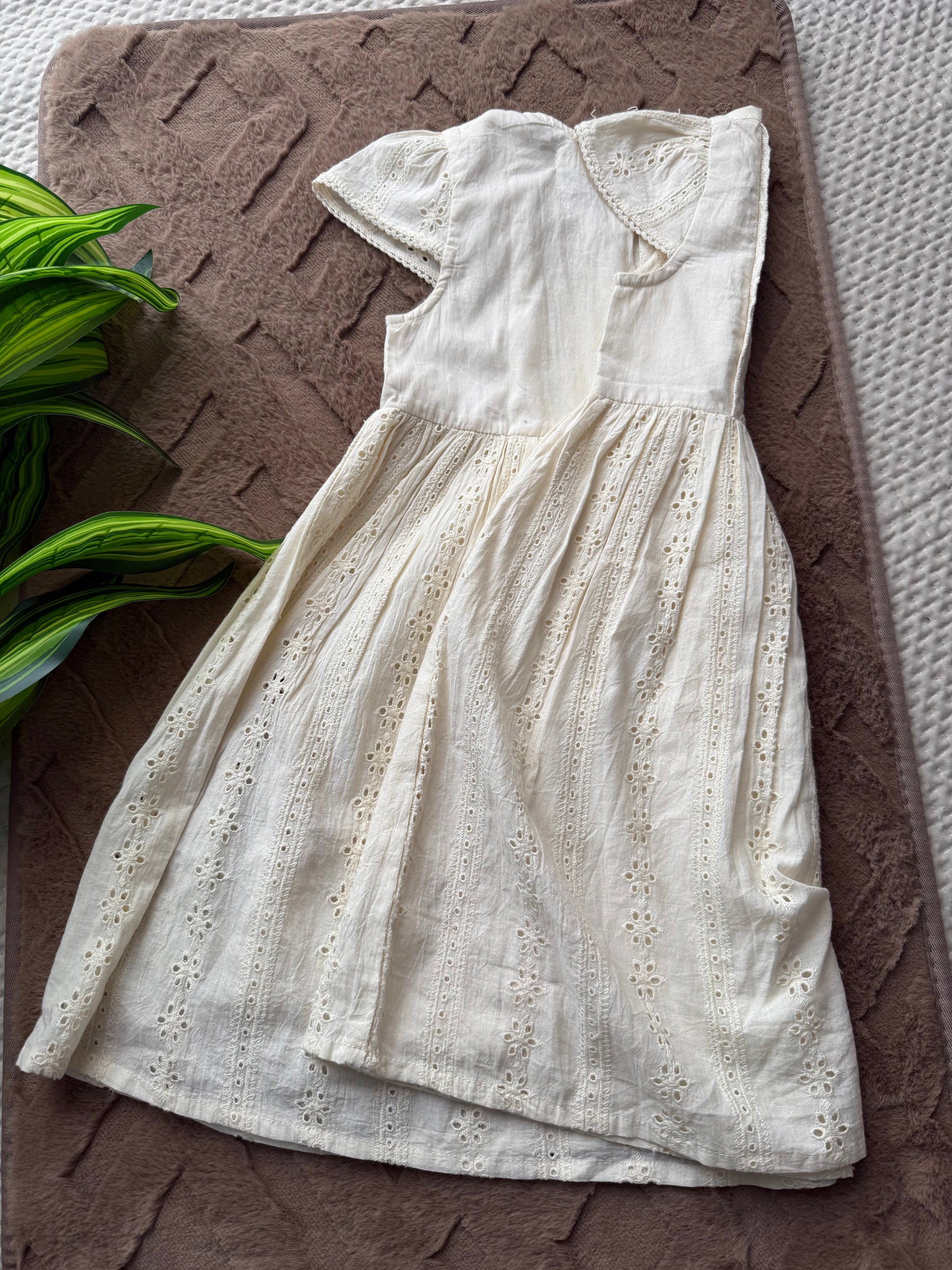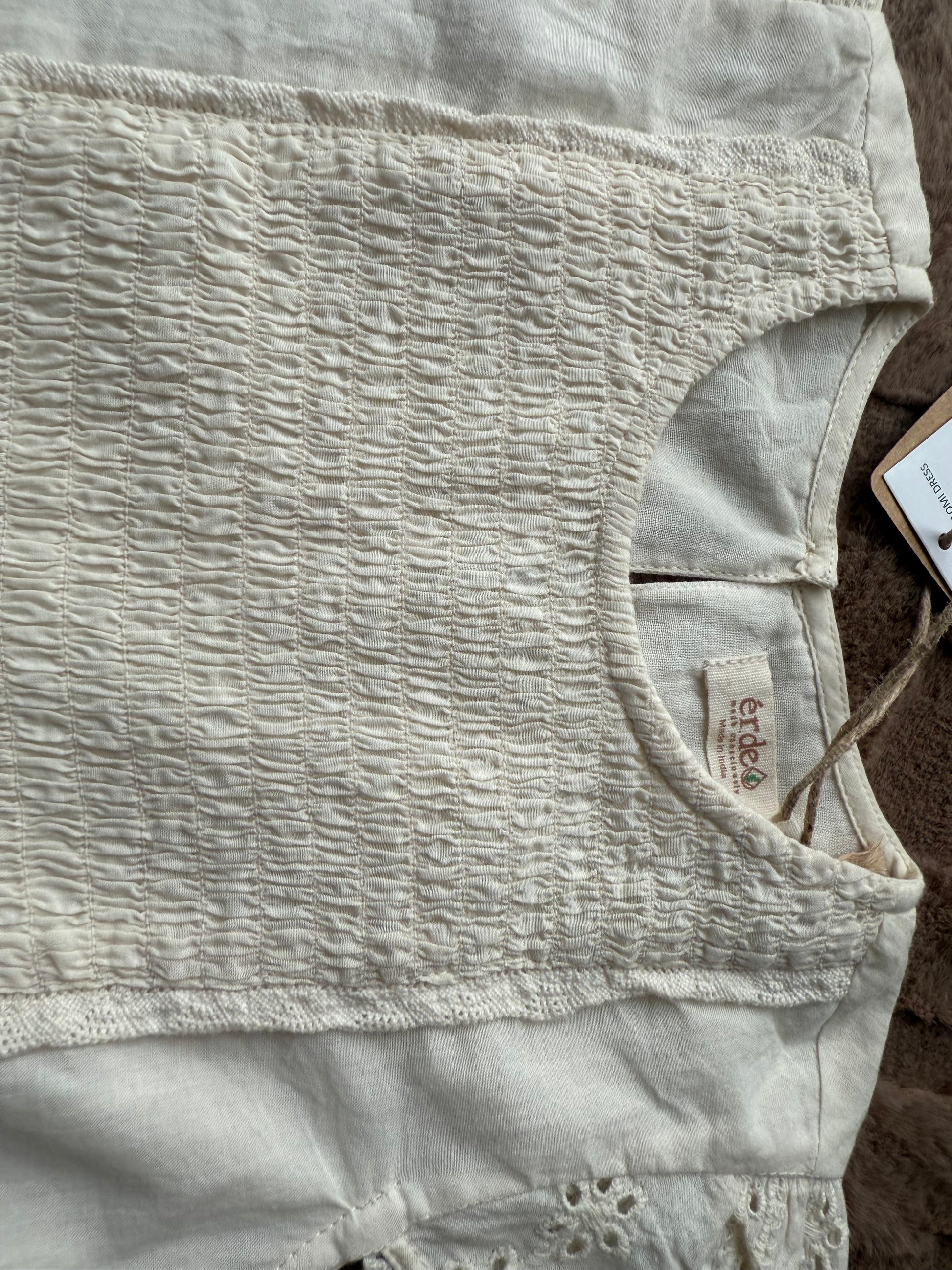 The Naomi Dress is designed for the sweetest milestones โ a dreamy, heirloom-style piece with gentle smocking, fluttering eyelet sleeves, and an embroidered skirt that moves like a breeze. Made in soft, breathable cotton, its elegant cream tone makes it a versatile favorite for weddings, birthdays, festivals, and everything in between.