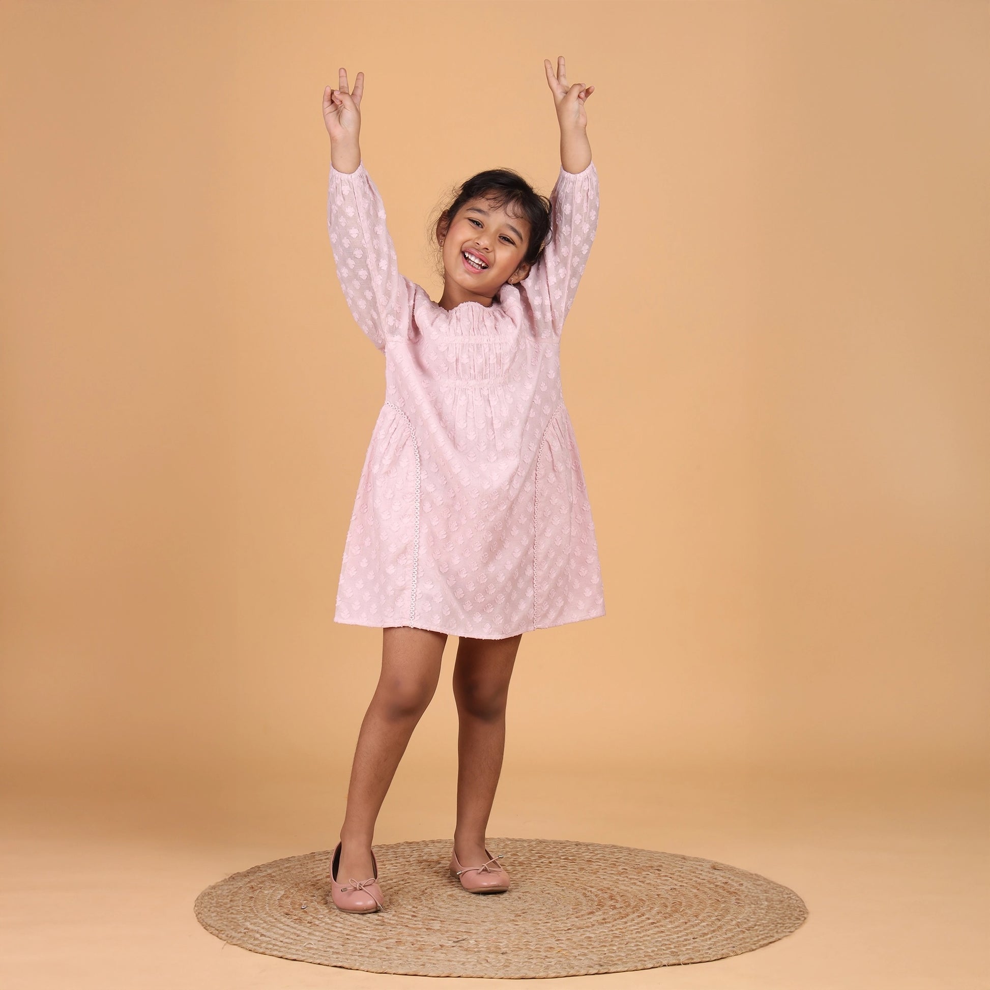 The Paloma Dress is a festive charm wrapped in soft comfort. Crafted from luxurious cotton jacquard in a dreamy Barbie-pink hue, this dress combines the richness of artisanal fabric with the ease of everyday wear. Designed to make every celebration feel extra special, it balances elegance and playfulness effortlessly.