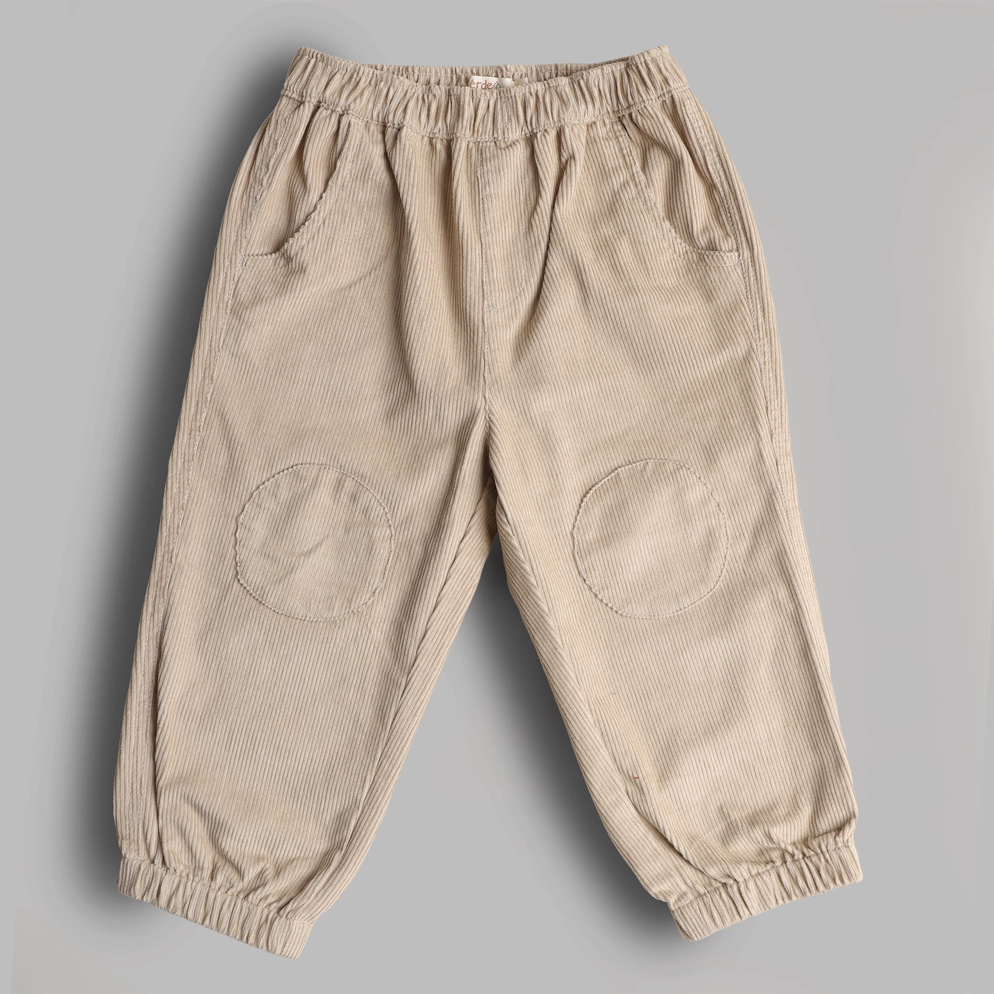 Designed in a relaxed baggy fit, the pant features round knee patches that not only add durability but also a touch of fun detailing. The neutral beige tone complements a wide range of tops, making it one of the most versatile bottoms in your child’s wardrobe.