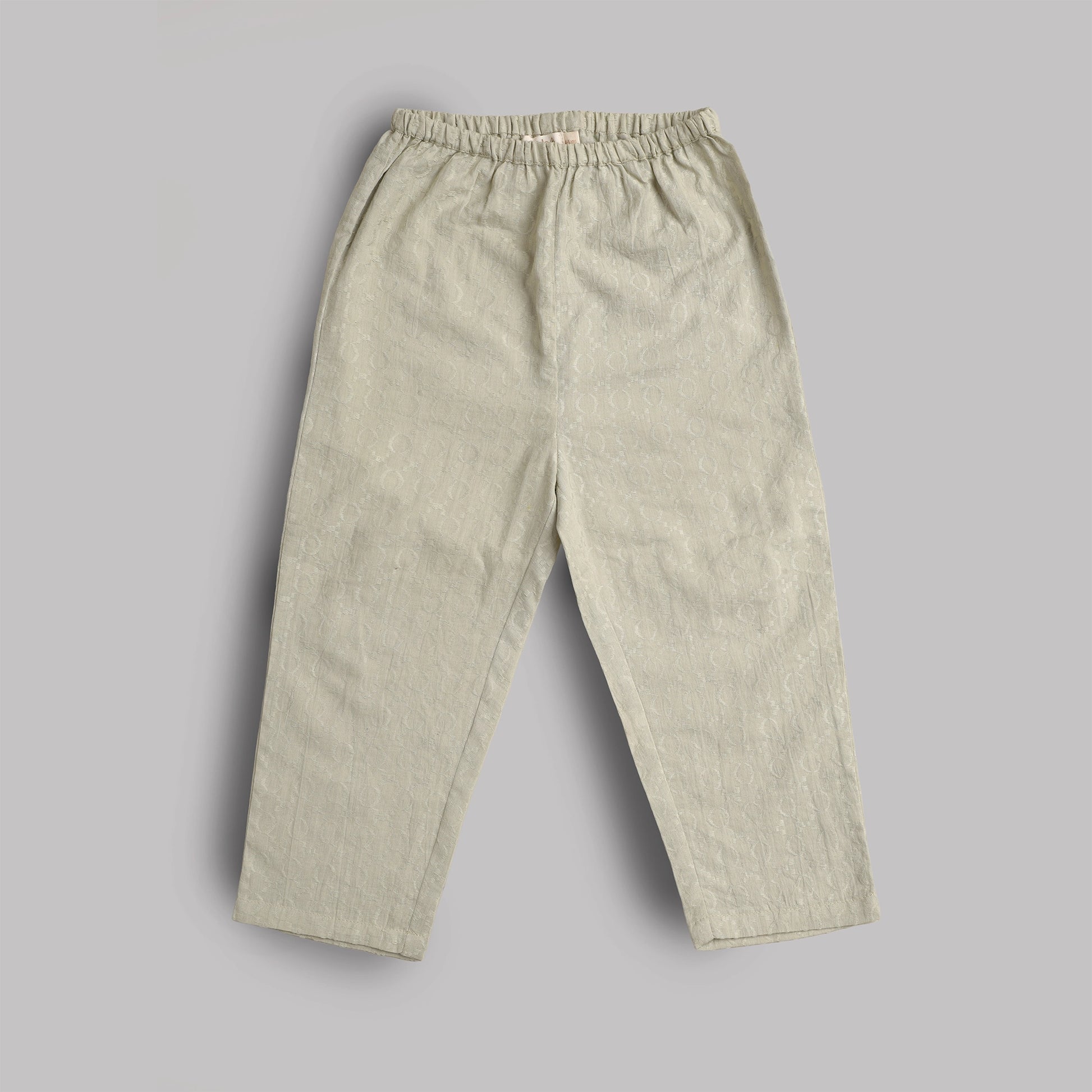 Coordinated pants in matching embroidered fabric