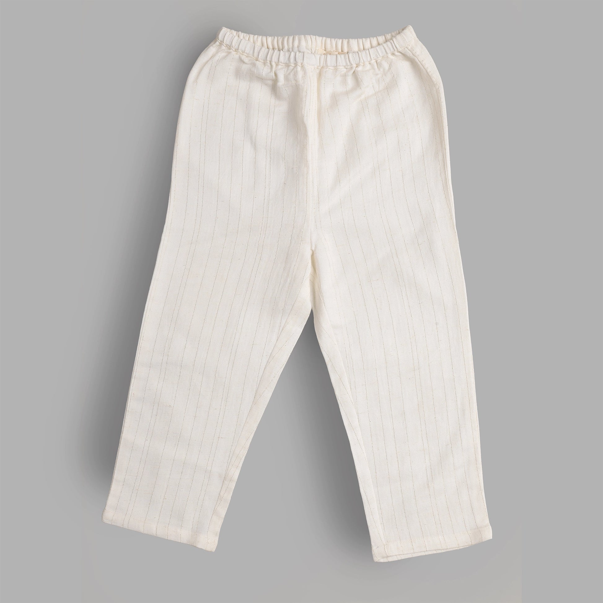 The WhiteGoldKurtaSet captures timeless elegance with a modern festive touch. Crafted from cottontwill with delicate lurex stripes, this set glows softly under light — offering a perfect balance of comfort, luxury, and effortless charm.